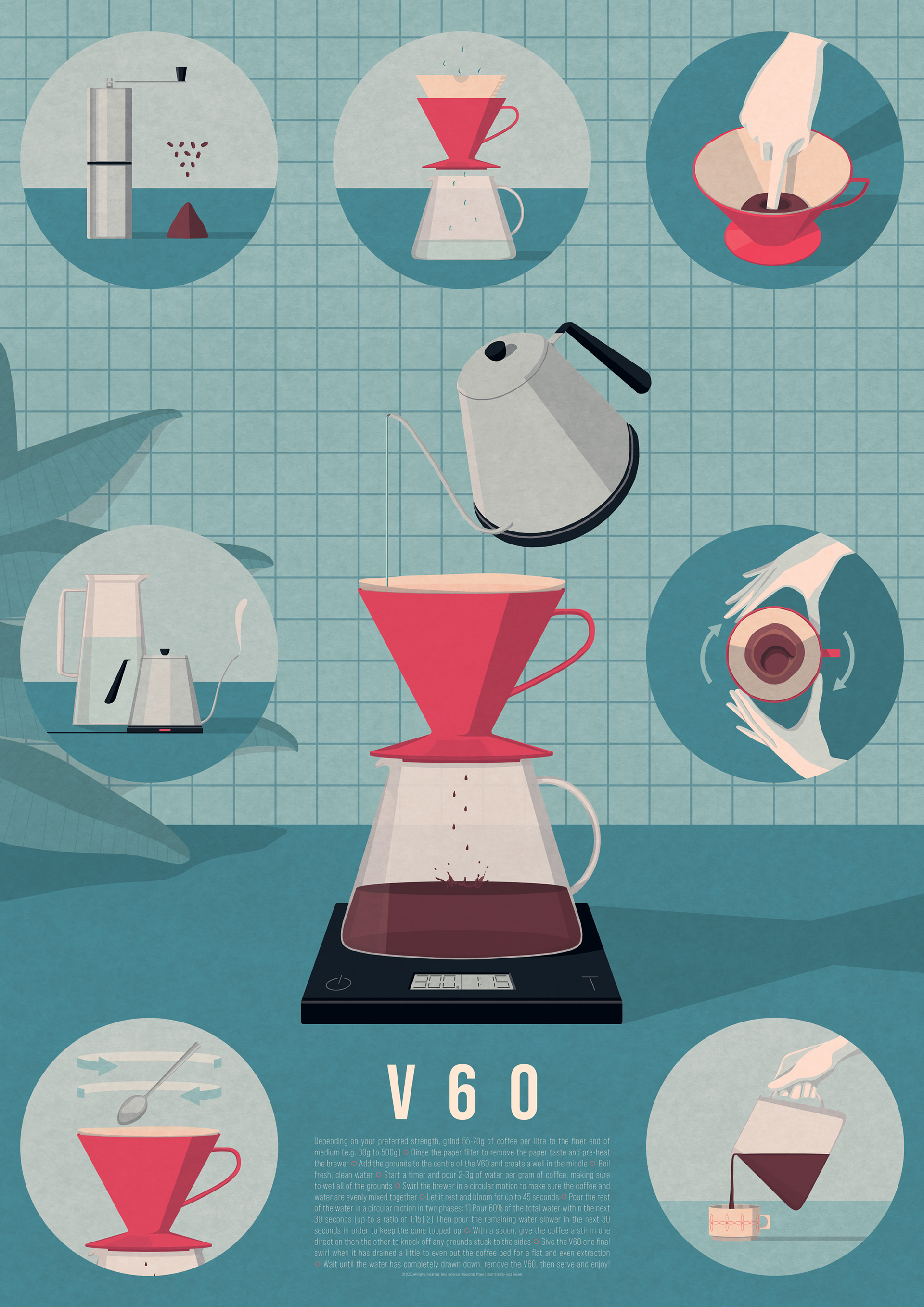 V60 Brew Guide poster commissioned by James Hoffman's merchandise company